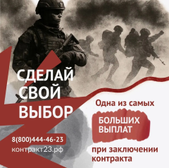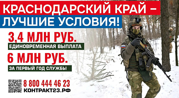 3,4 миллиона рублей – за контракт с Минобороны России в Краснодарском крае Те, кто заключит контракт от Краснодарского края теперь получат: 3,4 млн рублей сразу при подписании контракта 6 млн рублей и больше – за 1 год службы Только за первый год службы военнослужащие могут получить до 6 миллионов рублей. Кроме того, участникам специальной военной операции и их семьям доступны меры господдержки: -Бесплатные земельные участки -Помощь в газификации домовладений -Списание долгов по кредитам -Сертификаты на санаторно-курортное лечение и другие.