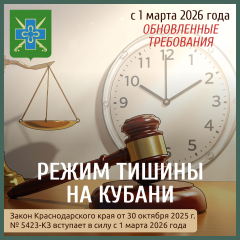 Информация о вступлении в силу с 1 марта 2026 года на территории Краснодарского края обновленных требований к обеспечению тишины и покоя граждан