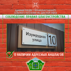 Уважаемые жители Старомышастовского сельского поселения! Администрация напоминает о важности соблюдения правил благоустройства, касающихся наличия адресных аншлагов (табличек с названием улицы и номером дома) на фасадах зданий. Наличие хорошо различимого аншлага — это не просто требование законодательства, а вопрос вашей безопасности и оперативности работы экстренных служб. Отсутствие понятного адреса на доме может затруднить,
