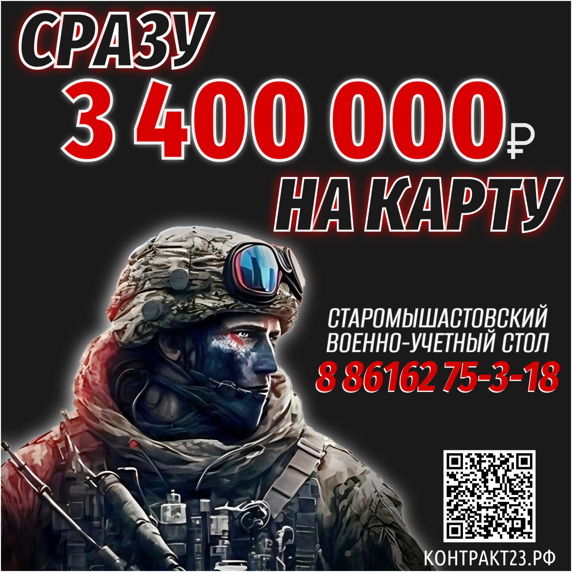 Подробную информацию можно узнать на официальном сайте контракт23.рф или по номеру телефона Старомышастовского военно-учетного стола (ВУС): 8(86162)7-53-18.